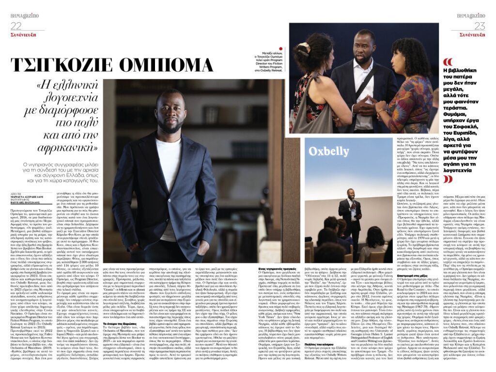 Συναντούμε τον πολυβραβευμένο συγγραφέα Τζιγκοζιέ Ομπιόμα, που μιλάει για τη γέφυρα που ενώνει τη Νιγηρία με την Ελλάδα – από τον Όμηρο έως το σήμερα – και αποκαλύπτει τις πολιτιστικές και φιλοσοφικές του επιρροές.