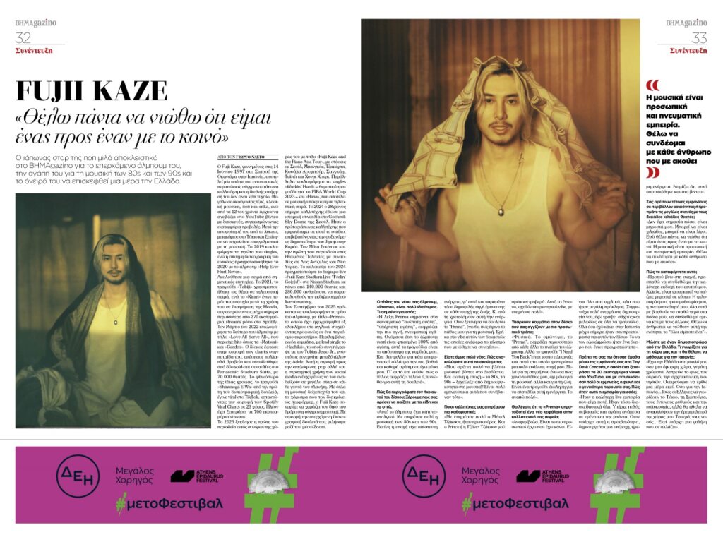 Ο Fuji Kaze, ο εκρηκτικός σταρ της ιαπωνικής ποπ σκηνής, μιλά αποκλειστικά στο BHMAGAZINO για το νέο του άλμπουμ, για την απροσδόκητη αγάπη του για τη μουσική των 80’s και 90’s, και για το παιδικό του όνειρο να ταξιδέψει στην Ελλάδα. Μια συζήτηση με πάθος, ειλικρίνεια και ανατροπές.