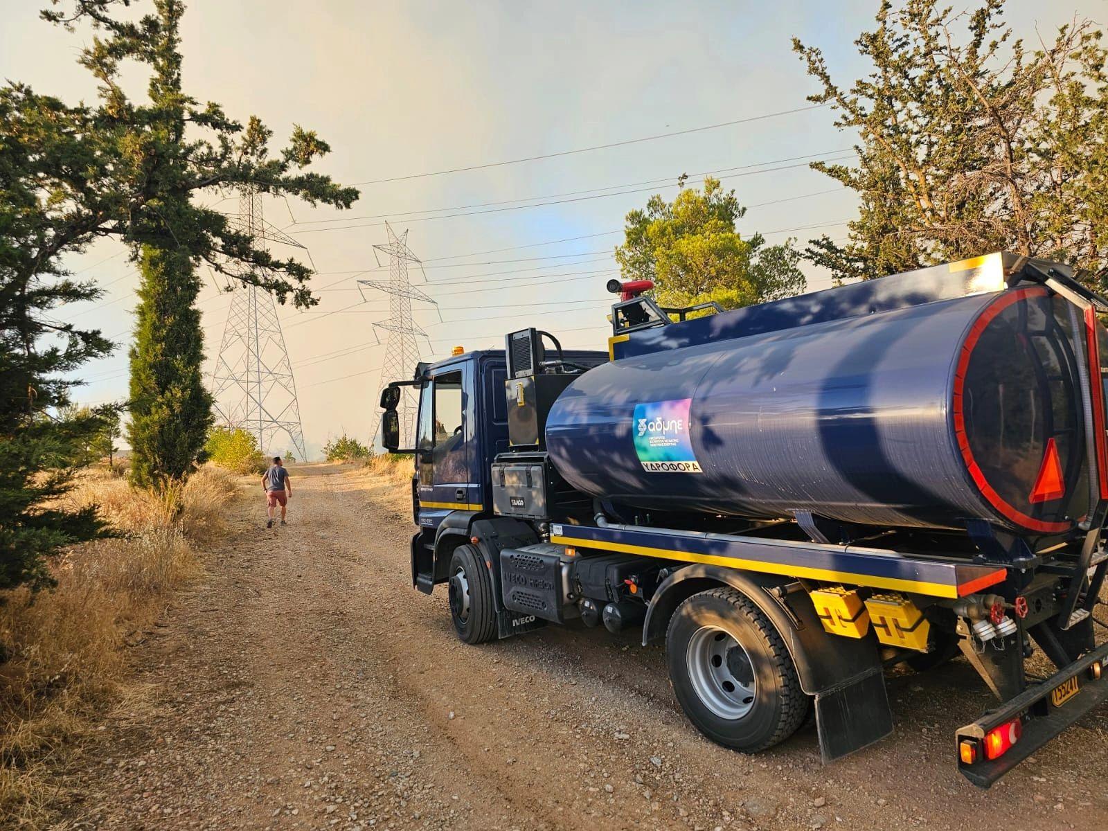 Με υδροφόρες το κατάλληλα εκπαιδευμένο προσωπικό ενίσχυσε το έργο της Πυροσβεστικής στην κατάσβεση των εστιών και φυσικά στην αποτροπή ενός πιθανού κινδύνου στις εγκαταστάσεις του Κέντρου Ελέγχου Ενέργειας.