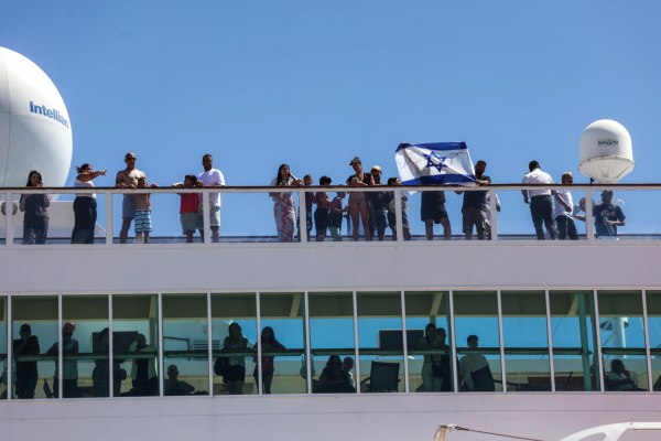 Τεταμένη είναι η ατμόσφαιρα στο λιμάνι του Αγίου Νικολάου στην Κρήτη, με αφορμή την άφιξη του κρουαζιερόπλοιου «Crown Iris», το οποίο μετέφερε περίπου 1.500 επιβάτες από το Ισραήλ.