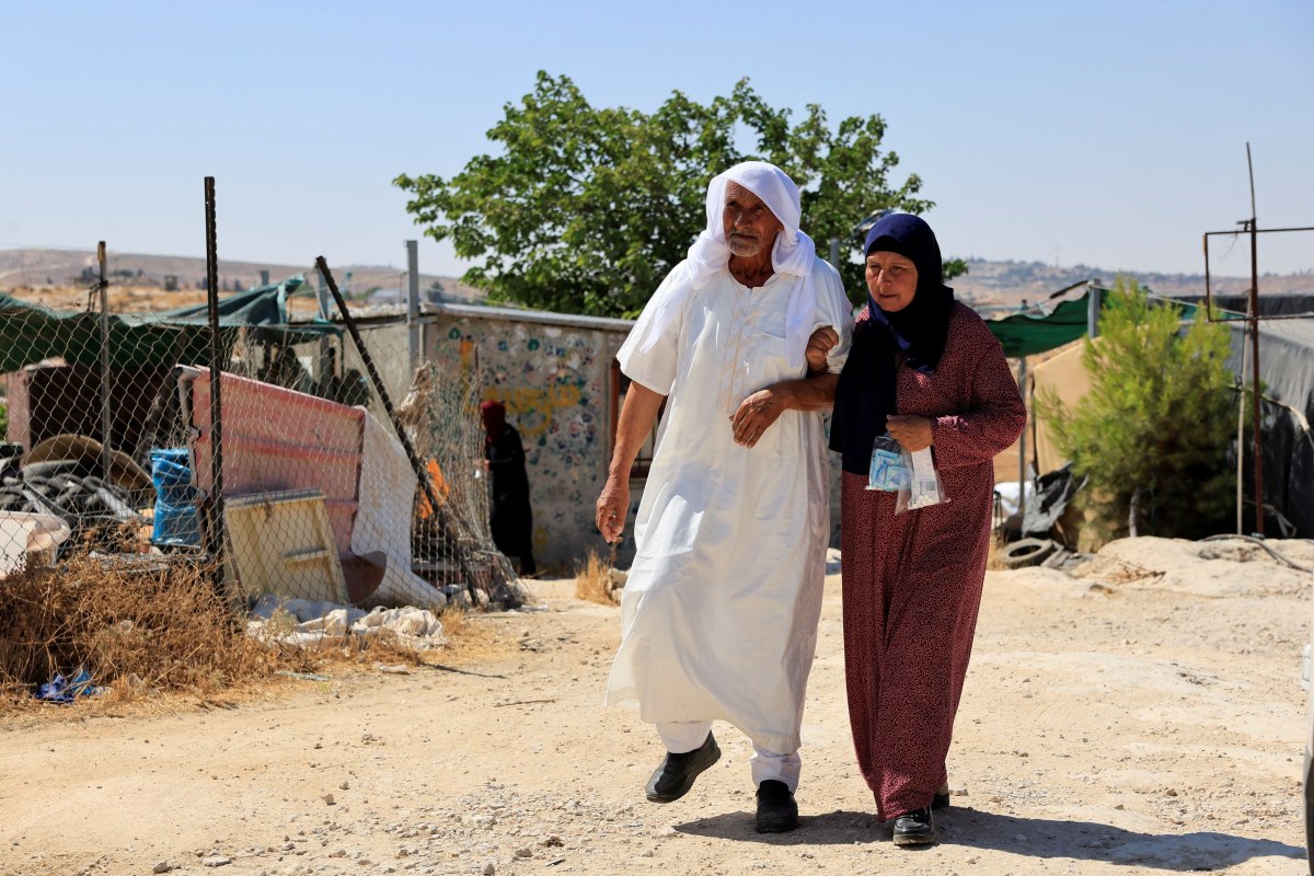 Ο Παλαιστίνιος Μοχάμαντ Μογκάνναμ περπατάει με τη σύζυγό του στη Σουσιά, κοντά στη Χεβρώνα, στην κατεχόμενη από το Ισραήλ Δυτική Όχθη, στις 22 Ιουλίου 2025.