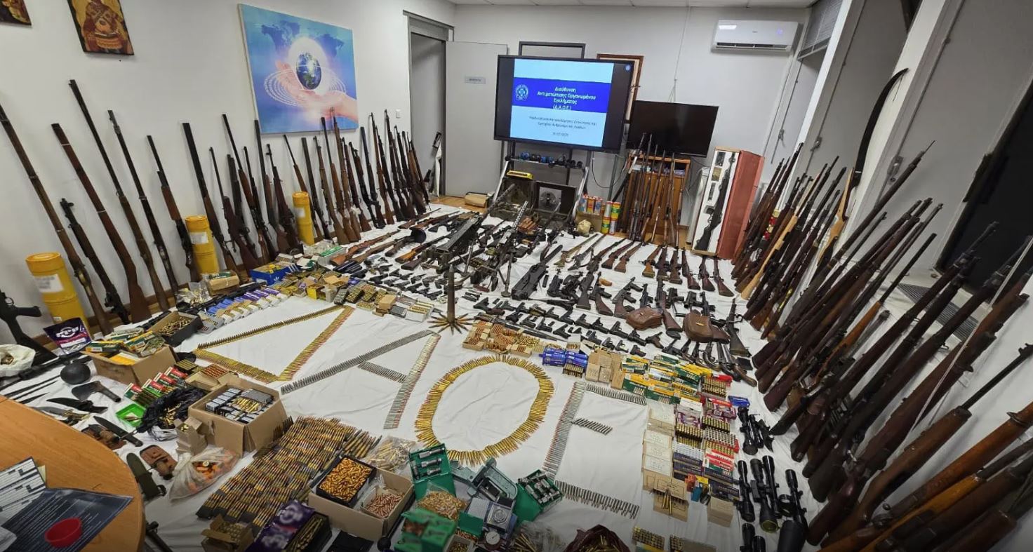 Κατά τη διάρκεια μεγάλης αστυνομικής επιχείρησης της Διεύθυνσης Αντιμετώπισης Οργανωμένου Εγκλήματος στο Κιάτο, εντοπίστηκαν στο σπίτι του απόστρατου, περισσότερα από 170 όπλα και 15.500 φυσίγγια.