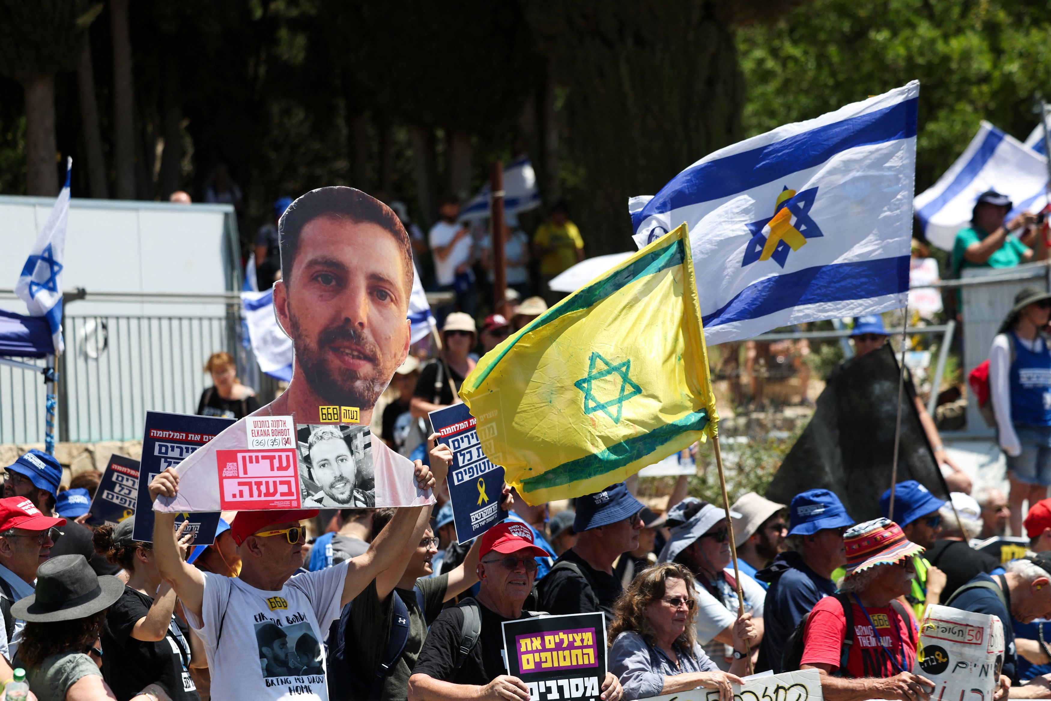Υπέρ μια συμφωνίας που θα επέτρεπε την απελευθέρωση των 20 πλέον ομήρων που βρίσκονται εν ζωή ήταν ο Αρχηγός του Επιτελείου των IDF, αντιστράτηγος Εγιάλ Ζαμίρ, ο υπουργός Εξωτερικών, Γκίντεον Σάαρ, ο ηγέτης της Shas, Αριέ Ντέρι, ο Σύμβουλος Εθνικής Ασφάλειας Τζάτσι Χανέγκμπι, ο επικεφαλής της Μοσάντ, Ντέιβιντ Μπαρνέα, ο διαπραγματευτής της Σιν Μπετ, γνωστός με το εβραϊκό γράμμα «Μεμ», υποστράτηγος (ε.α.) Νιτζάν Αλόν.