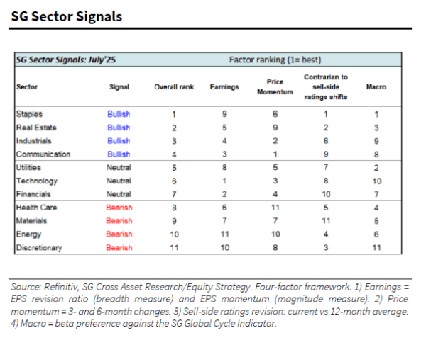 Η τράπεζα διατηρεί την πρόβλεψή της για τον S&P 500 εντός του εύρους 5.500–6.750 μονάδων για το 2025, ενώ προειδοποιεί για πιθανή διόρθωση κατά το τρίτο τρίμηνο λόγω του νέου περιβάλλοντος δασμών. Ωστόσο, τονίζει ότι οποιαδήποτε διόρθωση θα είναι επιφανειακή, καθώς η κερδοφορία των εταιρειών αναμένεται να παραμείνει υποστηρικτική. Οι δείκτες του SG Turning Point Cycle υποδεικνύουν τα πρώτα σημάδια επιτάχυνσης της αγοράς.