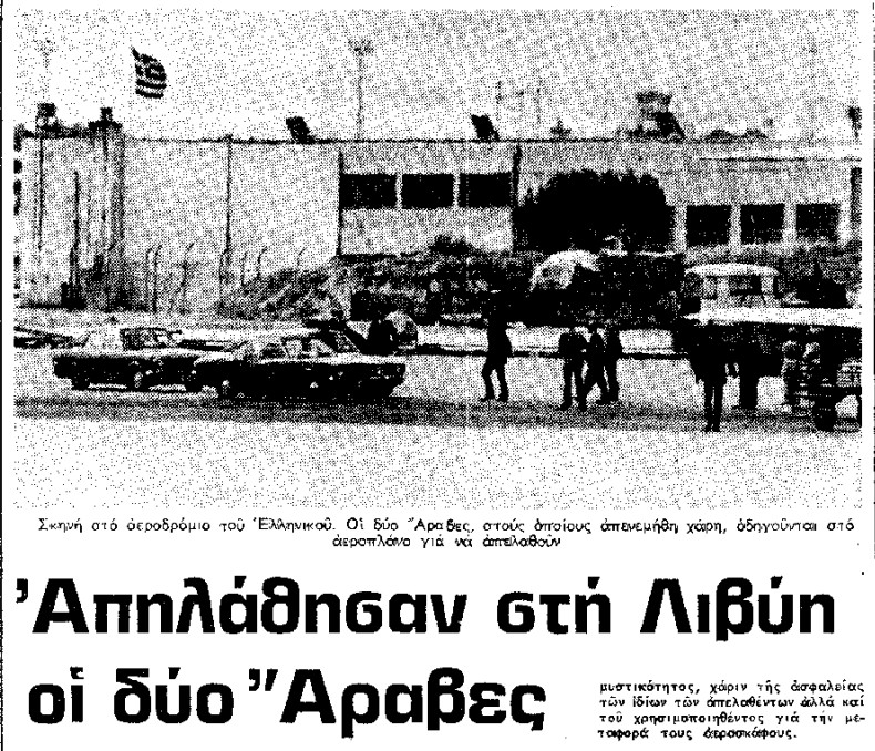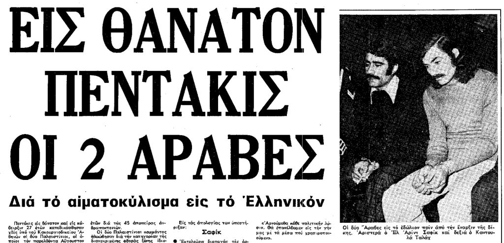 Καταδικάστηκαν «πεντάκις εις θάνατον και εις κάθειρξιν 27 ετών. Ύστερα όμως από απονομή χάριτος και μετατροπή της θανατικής τους ποινής, οι δύο Παλαιστίνιοι απελάθηκαν στη Λιβύη.