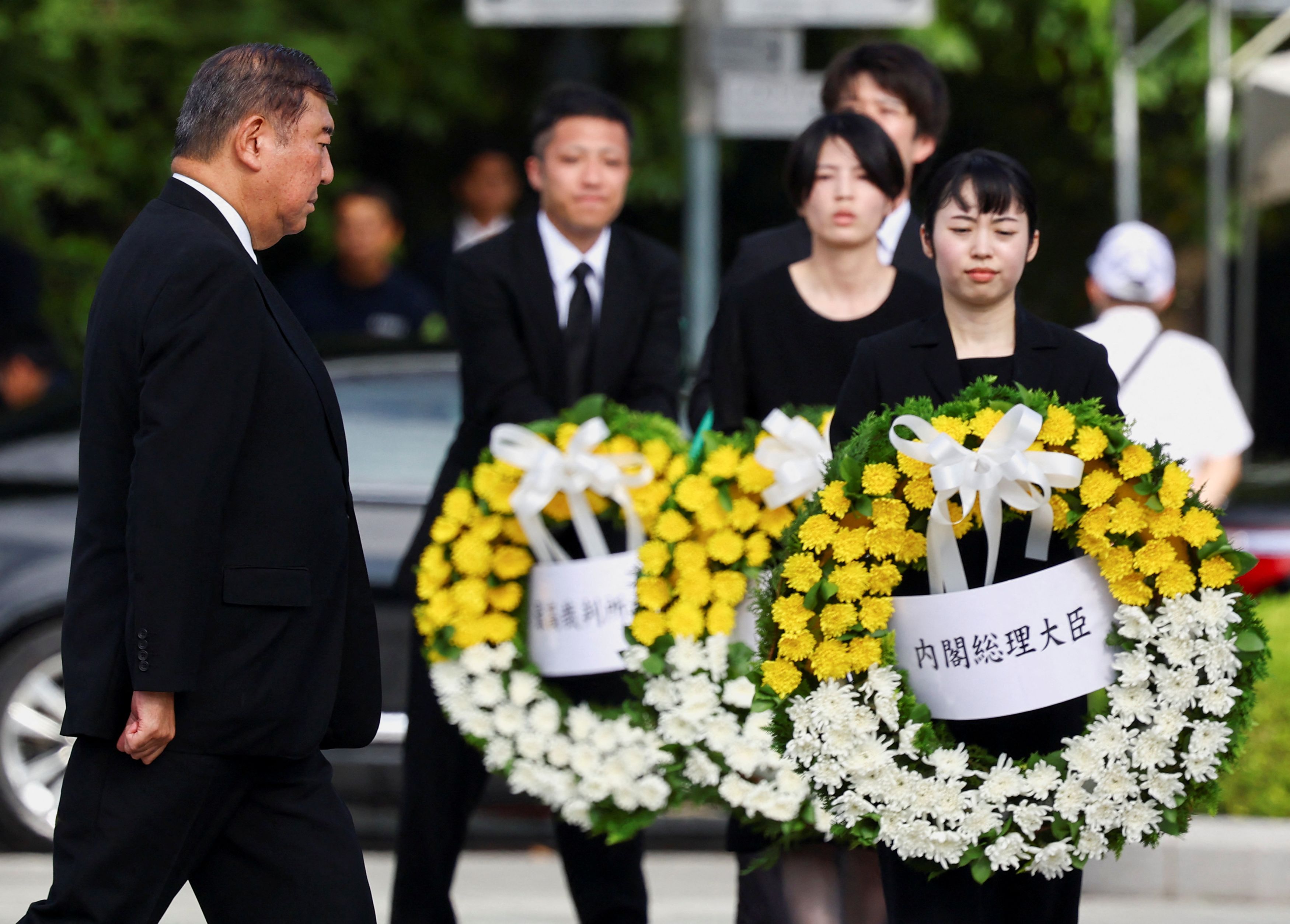 «Η χώρα μας, το μοναδικό έθνος που υπέστη βομβαρδισμούς με ατομικές βόμβες σε καιρό πολέμου, έχει αποστολή να ηγηθεί στις διεθνείς προσπάθειες για έναν κόσμο απαλλαγμένο από τα πυρηνικά όπλα», δήλωσε στη Χιροσίμα ο ιάπωνας πρωθυπουργός Σιγκέρου Ισίμπα.