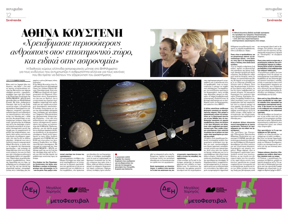 Η Αθηνά Κουστένη, η διακεκριμένη Ελληνίδα αστροφυσικός με διεθνή ακτινοβολία, μιλά αποκλειστικά στο BHMAGAZINO για τους υπαρξιακούς κινδύνους που απειλούν την ανθρωπότητα, αλλά και για το ηθικό πλαίσιο που πρέπει να διέπει την εξερεύνηση του Διαστήματος.