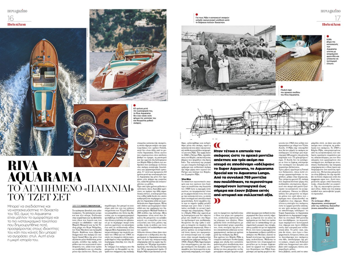 Και φυσικά, το απόλυτο σύμβολο κομψότητας στο νερό: το Riva Aquarama, το πιο ινσταγκραμικό ταχύπλοο που κατασκευάστηκε ποτέ. Όχι απλώς ένα σκάφος, αλλά τρόπος ζωής – για όσους δεν αγοράζουν απλώς αντικείμενα, αλλά στυλ.