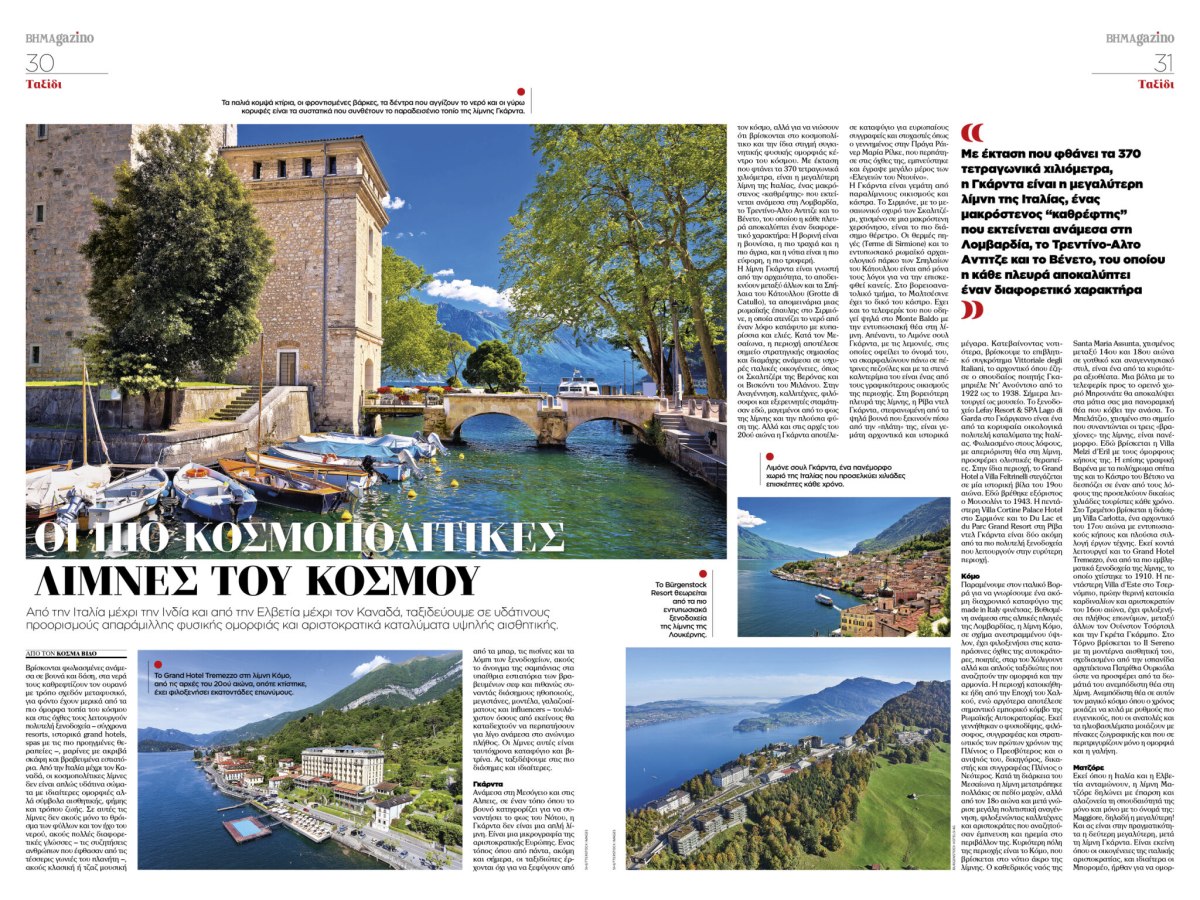 Η καλοκαιρινή περιπλάνηση συνεχίζεται με ένα ταξίδι στις πιο κοσμοπολίτικες λίμνες του κόσμου – από τη βόρεια Ιταλία μέχρι τον Καναδά και από την Ελβετία ως την Ινδία. Αριστοκρατικά καταλύματα, απαράμιλλη φυσική ομορφιά και ένα ονειρικό υδάτινο σκηνικό που αξίζει να ανακαλύψετε.