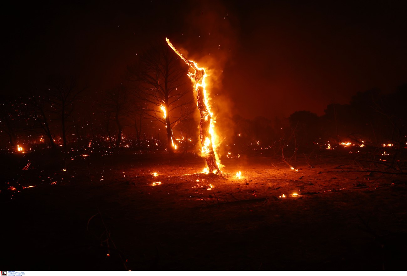 Αργά το βράδυ του Σαββάτου, οι πυροσβεστικές δυνάμεις στην Κερατέα παρέμεναν σε επιφυλακή για τυχόν αναζωπυρώσεις. Η μεγάλη πυρκαγιά άφησε πίσω της έναν νεκρό, χιλιάδες καμένα στρέμματα δάσους και σπίτια που καταστράφηκαν ολοσχερώς.