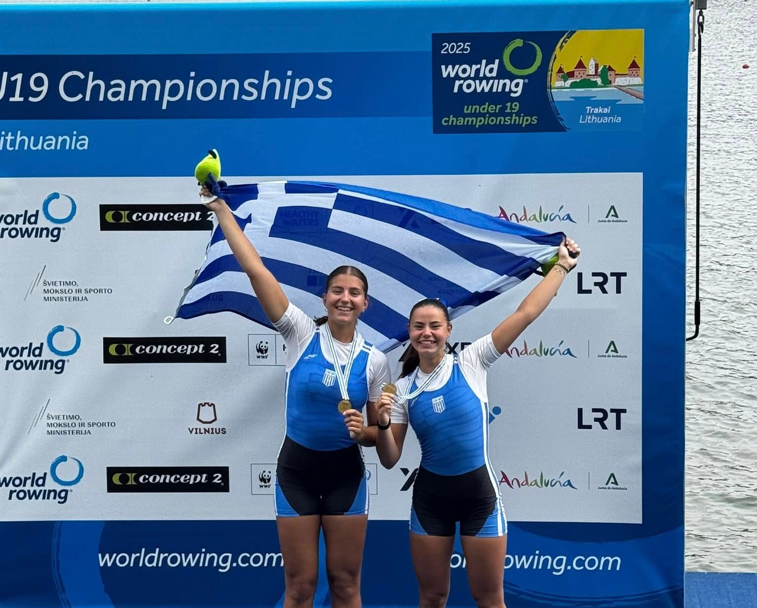 Χρυσό μετάλλιο κατέκτησαν οι Πασχαλίνα Μουρατίδου και Ελένη Διαβάτη στον τελικό του διπλού σκιφ, καθώς οι δύο Ελληνίδες άφησαν πολλά μέτρα πίσω τα πληρώματα της Μεγάλης Βρετανίας και της Γερμανίας, με αποτέλεσμα ν’ ανεβούν στο υψηλότερο σκαλί του βάθρου.