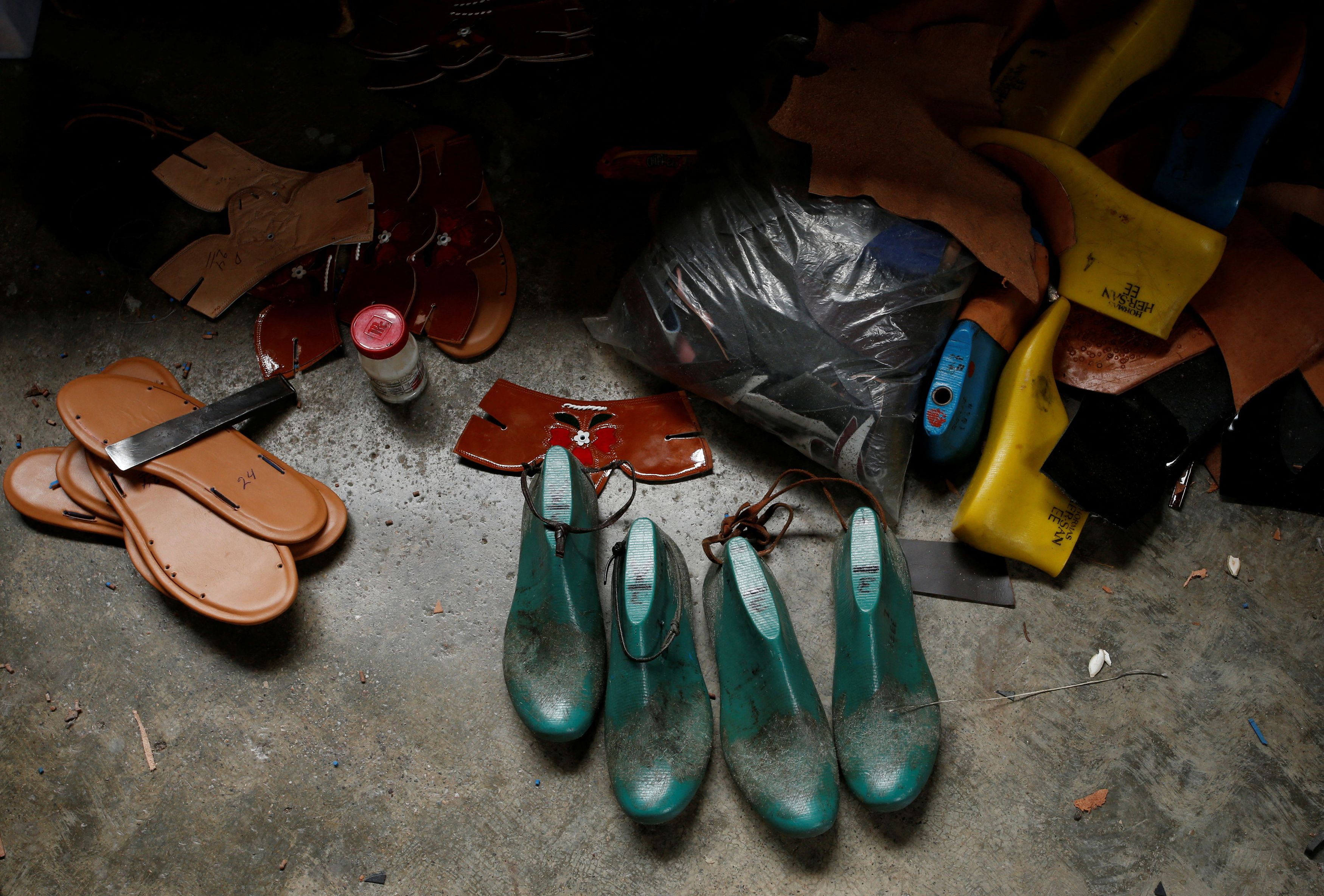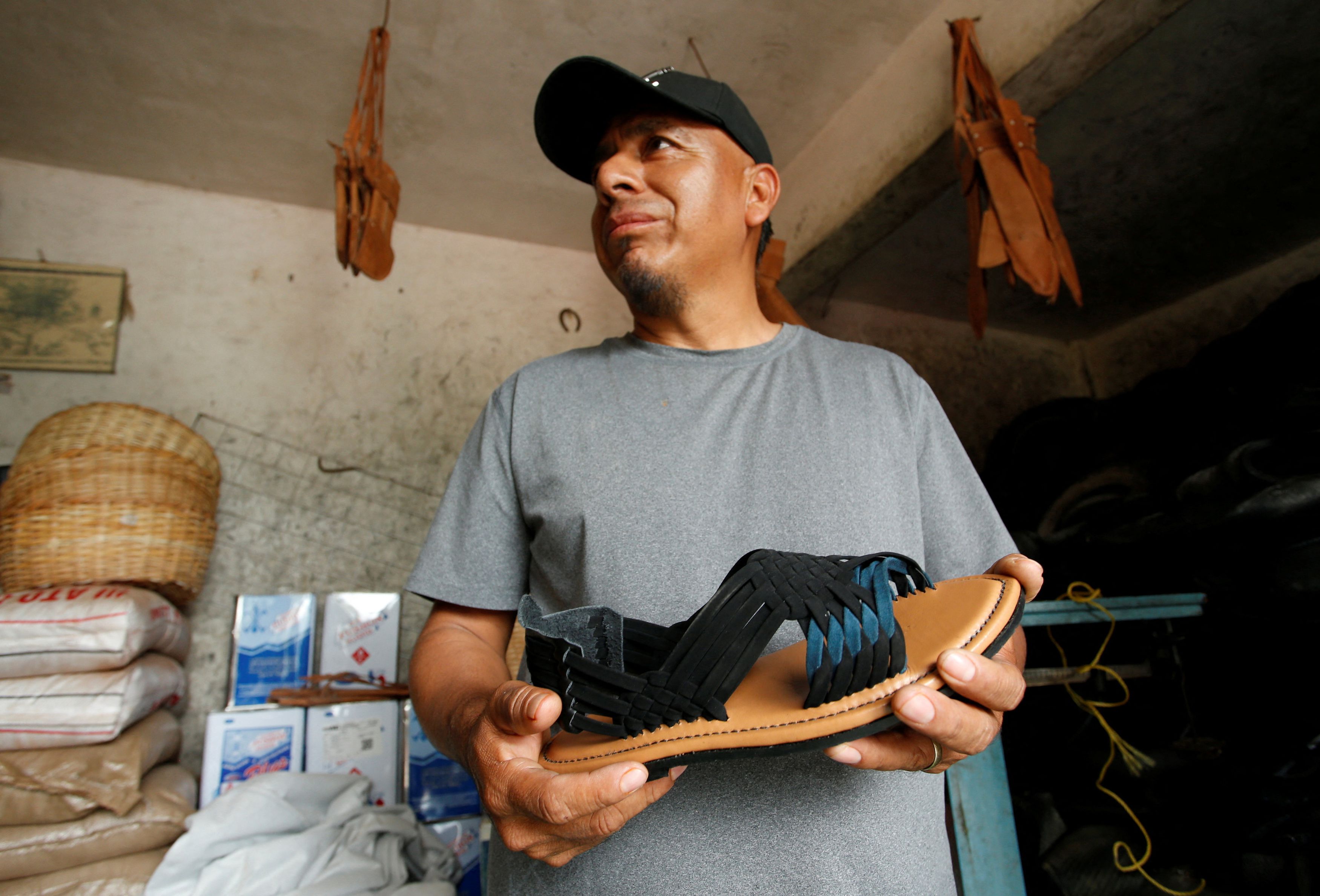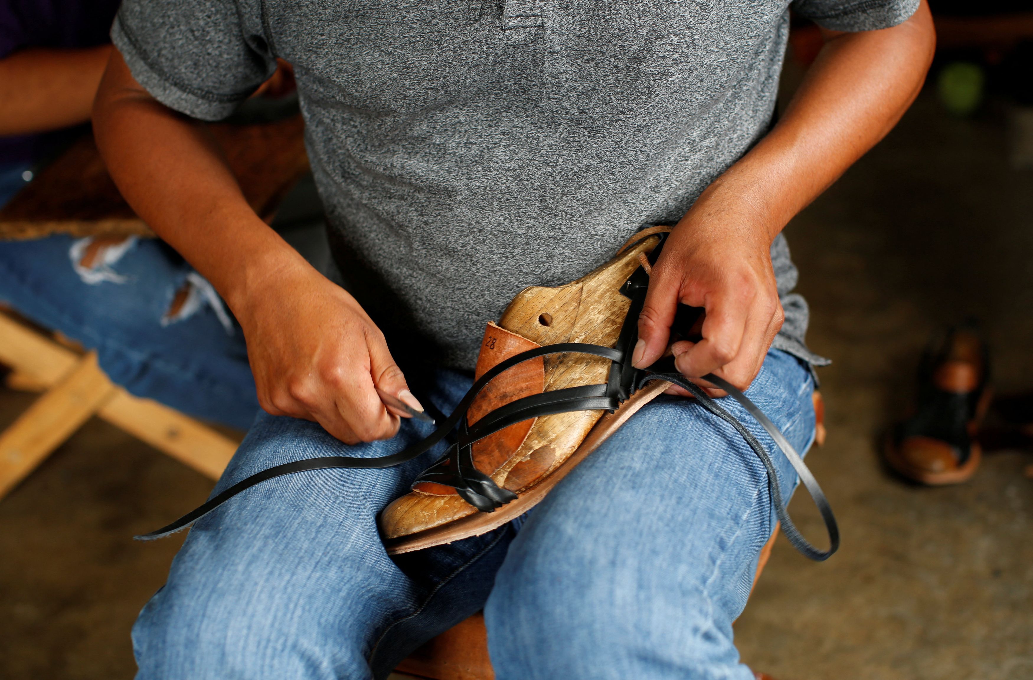 Παραδοσιακά σανδάλια του Μεξικού απεικονίζονται σε ένα εργαστήριο, καθώς ο Juan Aquino κατασκευάζει ένα ζευγάρι στη Villa Hidalgo Yalalag, ενώ η μεξικανική κυβέρνηση παρενέβη την Παρασκευή για να μεσολαβήσει σε μια διαμάχη μεταξύ ιθαγενών τεχνιτών από την Oaxaca και της Adidas σχετικά με ισχυρισμούς για πολιτιστική οικειοποίηση που αφορούν τα παπούτσια «Oaxaca Slip On», σχεδιασμένο από τον Willy Chavarria. REUTERS/Jorge Luis Plata