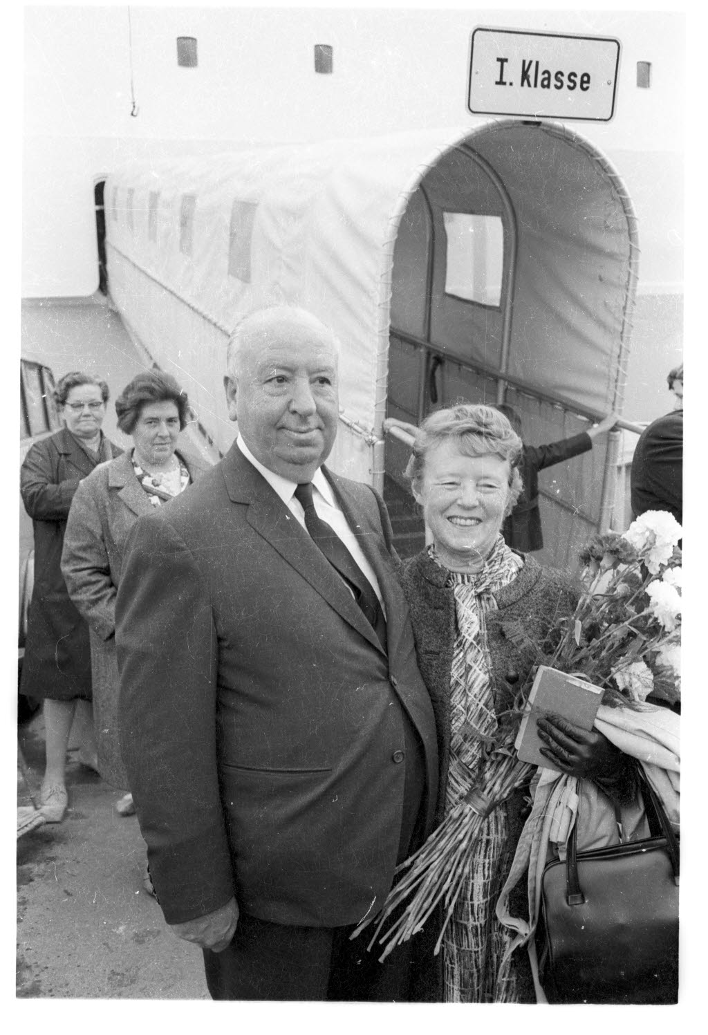 Ο Χίτσκοκ και η σύζυγός του Άλμα στην αποβάθρα του Όσλο. Ο λόγος του ταξιδιού είναι η πρεμιέρα της ταινίας το «Το σκισμένο παραπέτασμα», το 1966. Public Domain