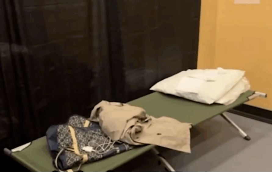 Instead of beds, there are small cots — two in each «room.» pic.twitter.com/XegoR8jXI3