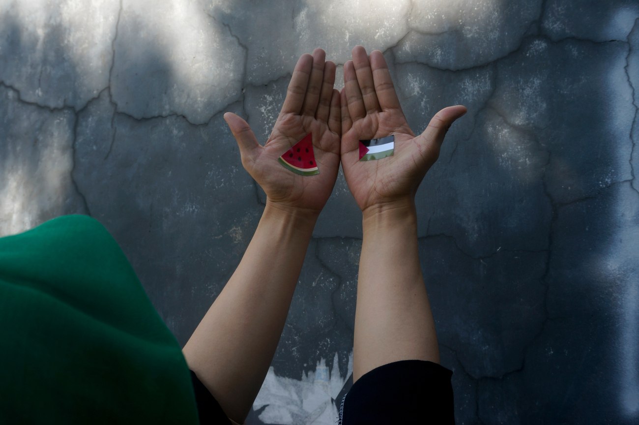 Σε ένα άλλο μέρος του κόσμου και για εντελώς διαφορετικούς λόγους, τα χρώματα του καρπουζιού, συμπεριλαμβανομένου του μαύρου των σπόρων του, έχουν προσφέρει έναν έξυπνο τρόπο υπεράσπισης του παλαιστινιακού σκοπού.
