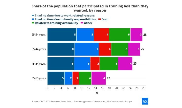 Η έκθεση δείχνει ότι οι χρονικοί περιορισμοί αποτελούν μικρότερο εμπόδιο για την εκπαίδευση των μεγαλύτερων ατόμων σε σύγκριση με τις νεότερες ηλικιακές ομάδες.