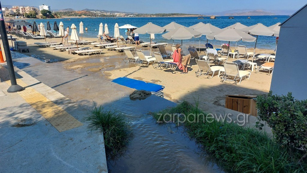 Κρήτη: Γέμισε λύματα παραλία στα Χανιά – Ποτάμι ο δρόμος, έντονη οσμή