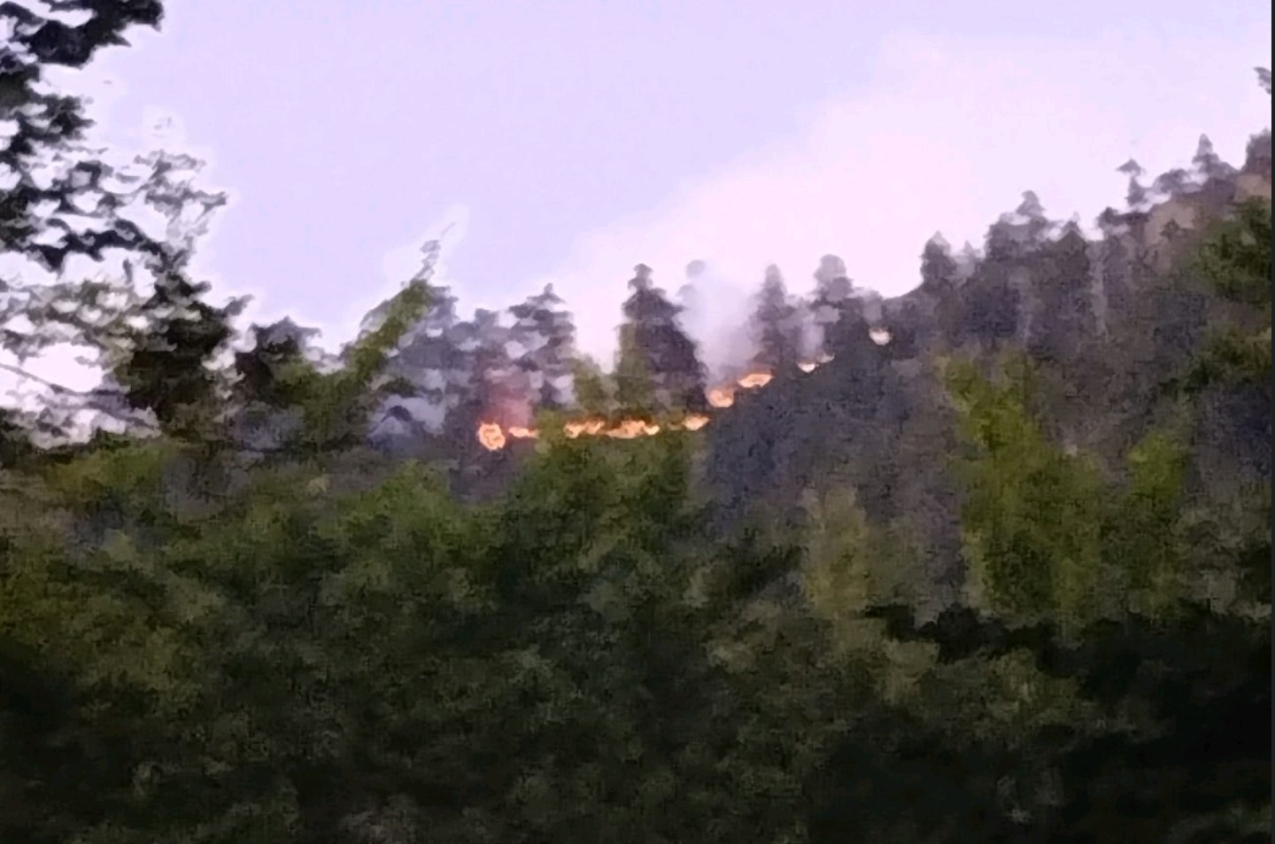 Σύμφωνα με πληροφορίες η φωτιά φαίνεται να εκδηλώθηκε από κεραυνό νωρίς το βράδυ.