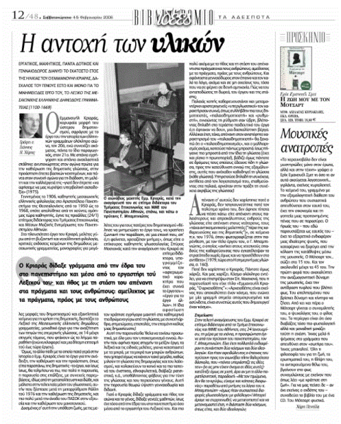 *Έξοχο κείμενο του αειμνήστου Γιάννη Η. Χάρη, διακεκριμένου μεταφραστή, επιμελητή εκδόσεων, αρθρογράφου και συγγραφέα (1953-2025). Έφερε τον τίτλο «Η αντοχή των υλικών» και είχε δημοσιευτεί στην εφημερίδα «Τα Νέα» το Σαββατοκύριακο 4-5 Φεβρουαρίου 2006, με αφορμή την αναγόρευση του Εμμανουήλ Κριαρά σε επίτιμο διδάκτορα του Τμήματος Επικοινωνίας και Μέσων Μαζικής Ενημέρωσης του ΕΚΠΑ επί πρυτανείας —κι αυτό αξίζει ασφαλώς να σημειωθεί— Γεωργίου Μπαμπινιώτη.