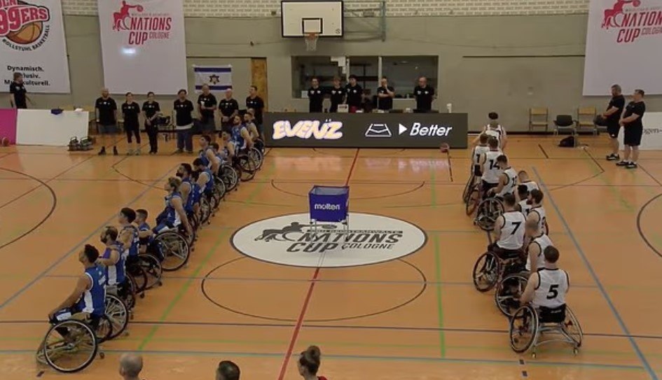 Με τον δικό της τρόπο διαμαρτυρήθηκε η βρετανική ομάδα μπάσκετ με αμαξίδιο για τον πόλεμο στη Λωρίδα της Γάζας, γυρίζοντας την πλάτη της στην ομάδα του Ισραήλ κατά την ανάκρουση του εθνικού ύμνου.