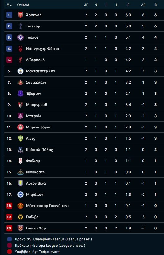 Με τον βαθμό αυτό η Φόρεστ έφτασε τους 4 βαθμούς, ενώ οι γηπεδούχοι έχουν πλέον δύο μετά από ισάριθμες ισοπαλίες.