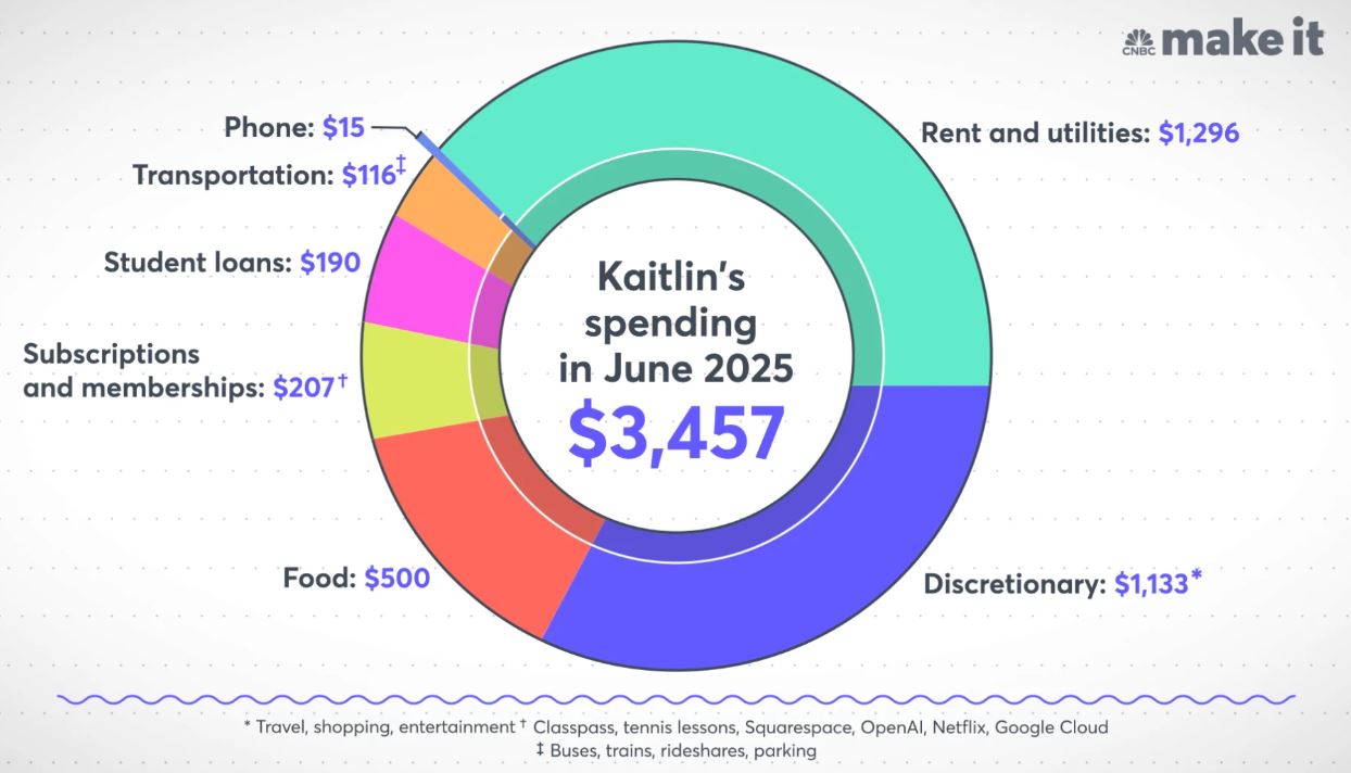 Ως ελεύθερος επαγγελματίας φροντίζει να κρατά για τον εαυτό της 3.000 δολάρια το μήνα, αρκετά για να καλύπτει τα βασικά της έξοδα. Τα υπόλοιπα έσοδα κατευθύνονται στις πληρωμές των φοιτητικών της δανείων, ένα μέρος πάει σε αποταμιεύσεις και επενδύσεις.