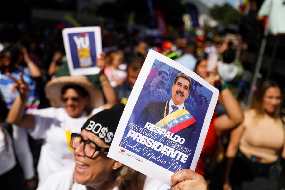 Υποστηρίκτρια της κυβέρνησης της Βενεζουέλα συμμετέχει σε πορεία υποστήριξης του προέδρου της Βενεζουέλα Νικολά Μαδούρο, μετά την ανακοίνωση της γενικής εισαγγελέως των ΗΠΑ Παμ Μπόντι ότι οι Ηνωμένες Πολιτείες διπλασίασαν την αμοιβή για πληροφορίες που θα οδηγήσουν στη σύλληψή του για κατηγορίες διακίνησης ναρκωτικών και συνδέσμων με εγκληματικές ομάδες, στο Καράκας της Βενεζουέλα, στις 11 Αυγούστου 2025.