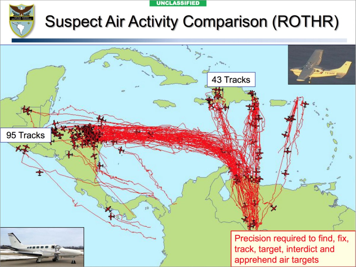Αεροπορική δραστηριότητα υπόπτων για διακίνηση ναρκωτικών, κυρίως από τη Βενεζουέλα, που παρακολουθείται από το Νότιο Στρατηγείο των Ηνωμένων Πολιτειών, με αρκετές πτήσεις ναρκωτικών προς την Αϊτή.