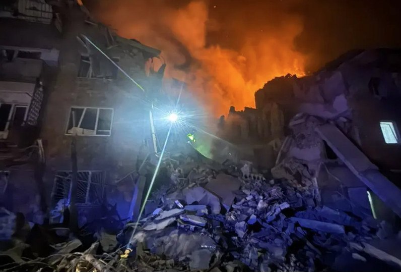 Ο στρατιωτικός περιφερειάρχης Τιμούρ Τκατσένκο έκανε λόγο για «ρωσική επίθεση με βαλλιστικούς πυραύλους» και πυρκαγιές σε βρεφονηπιακό σταθμό και πολυκατοικία.