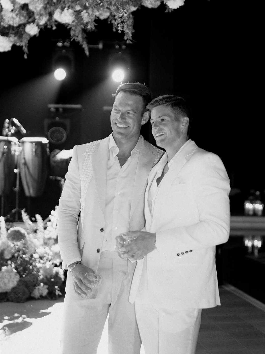 «Πριν από έναν χρόνο ακριβώς, στα Χανιά, σταθήκαμε μπροστά στους αγαπημένους μας και διαβάσαμε τους όρκους που σφράγισαν το κοινό πενταετές μας ταξίδι — λίγους μόνο μήνες αφότου είχαμε παντρευτεί νομικά στη Νέα Υόρκη, λίγο πριν η Ελλάδα αγκαλιάσει επιτέλους τον γάμο για όλους.