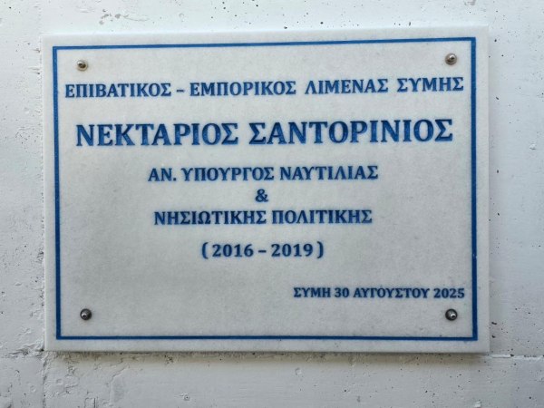 Ο Δήμος Σύμης και το Δημοτικό Λιμενικό Ταμείο Νότιας Δωδεκανήσου τιμούν με αυτόν τον τρόπο τη μνήμη του πολιτικού Νεκτάριου Σαντορινιού.