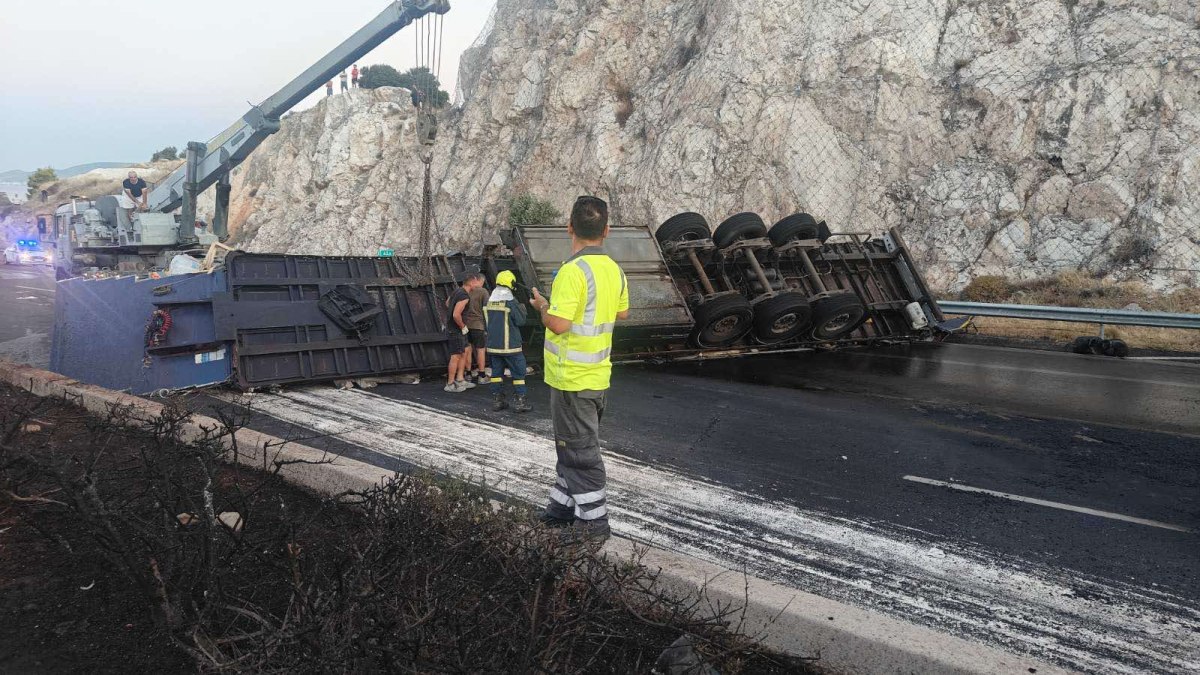 Σοβαρό τροχαίο σημειώθηκε αργά το απόγευμα στην εθνική οδό Αθηνών – Κορίνθου στο ύψος των Μεγάρων με ανατροπή νταλίκας.