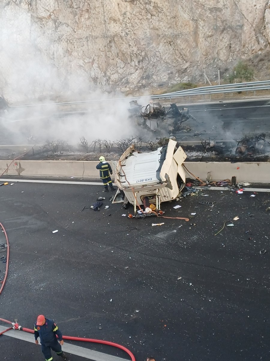 Σύμφωνα με την Τροχαία το ατύχημα σημειώθηκε στο 43ο χλμ της εθνικής οδού στο ρεύμα προς Αθήνα.