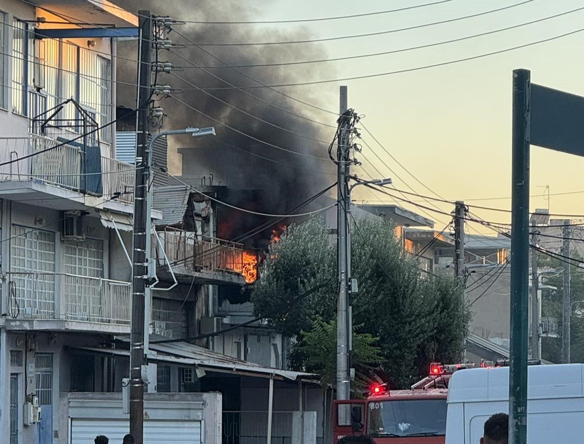 Λόγω της φωτιάς έχει διακοπεί η κυκλοφορία στην οδό Χρυσοστόμου από το ύψος της 25ης Μαρτίου μέχρι με την οδό Άνθιμου Γαζή.