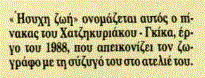 Με ιδιαίτερη χαρά γράφω σήμερα για τον ζωγράφο μας Χατζηκυριάκο – Γκίκα. Είναι λίγες αι περιστάσεις που μπορεί ν’ αφίση κανείς την πέννα του να γράφη ελεύθερα επαίνους. Εμείς επιφυλακτικοί συνήθως, φοβόμαστε ν’ αναγνωρίσουμε τους δικούς μας και μόνον όταν το κάνουν οι ξένοι αισθανόμαστε υπερηφάνεια· ψευτοϋπερηφάνεια μάλλον γιατί μόλο που δεν τους έχομε γνωρίσει όπως πρέπει, κοκορευόμαστε για τους σπουδαίους συμπολίτες μας. Πολλές φορές κρίνομε και κατακρίνομε χωρίς πραγματικά κριτήρια. Δεν έχομε σταθμίσει τις αδυναμίες των ξένων και όμως τους θαυμάζομε· και των δικών μας τις αδυναμίες τις έχομε δη με την λούπα, και αν δεν αντέχουν στην σύγκρισι με τ’ αριστουργήματα του κόσμου, κατά την πιο αυθαίρετη κρίσι μας, τ’ απορρίπτουμε ή τα δεχόμαστε με συγκατάβασι.