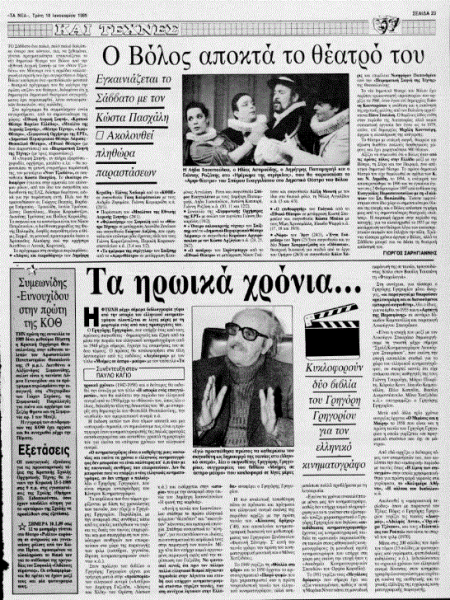 *Άρθρο αφιερωμένο στον Γρηγόρη Γρηγορίου με αφορμή την κυκλοφορία δύο βιβλίων του για τον ελληνικό κινηματογράφο. Η συνέντευξη που είχε παραχωρήσει ο Γρηγορίου στο δημοσιογράφο και συγγραφέα Παύλο Κάγιο έφερε τον τίτλο «Τα ηρωικά χρόνια…» και είχε δημοσιευτεί στην εφημερίδα «Τα Νέα» την Τρίτη 10 Ιανουαρίου 1989.