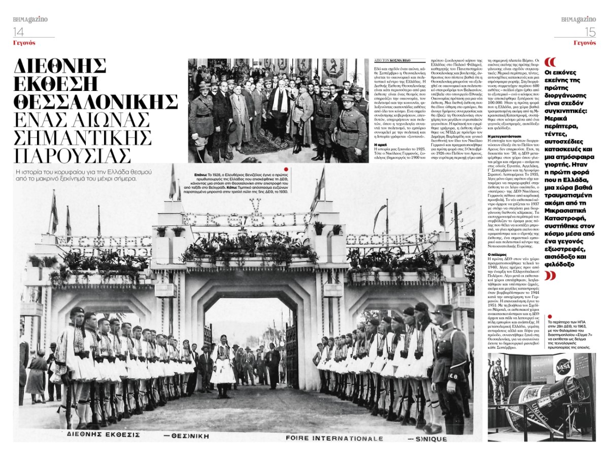 Στις σελίδες του τεύχους, η Διεθνής Έκθεση Θεσσαλονίκης ξετυλίγει την πορεία ενός αιώνα, από τα πρώτα της βήματα έως τη σημερινή της ακτινοβολία.