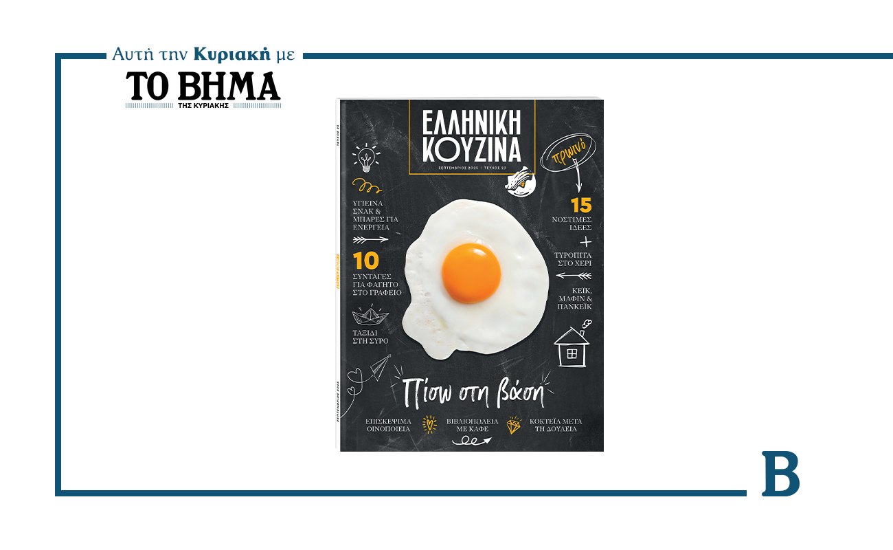 ΕΛΛΗΝΙΚΗ ΚΟΥΖΙΝΑ Κυκλοφορεί στις 7 Σεπτεμβρίου με ΤΟ ΒΗΜΑ