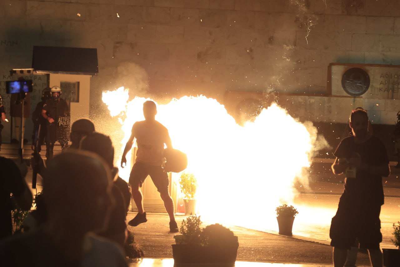 Ένταση στο Σύνταγμα – Μολότοφ και χειροβομβίδες κρότου λάμψης έξω από τη Βουλή [Βίντεο]