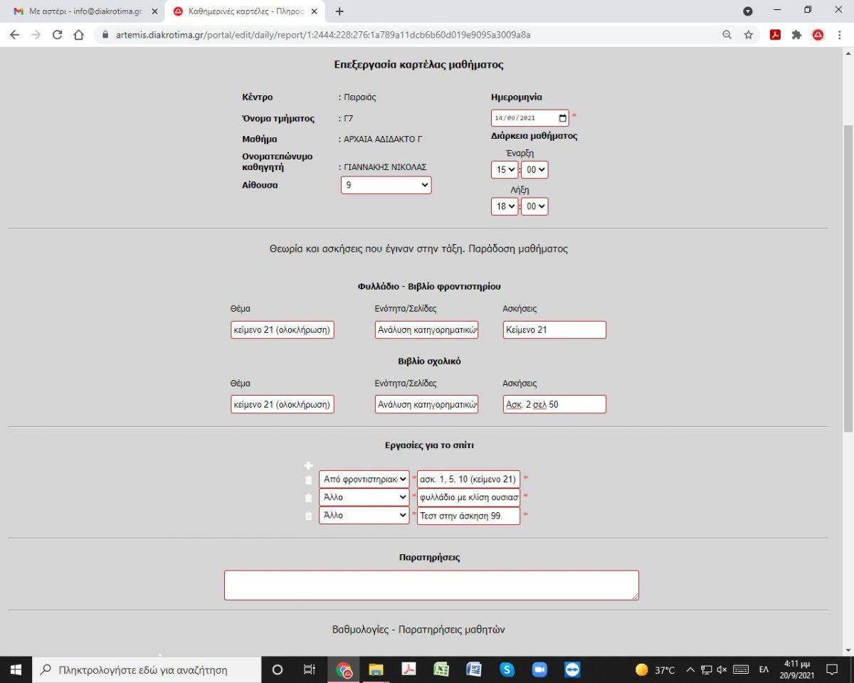 Οι γονείς έχουν τη δυνατότητα να ενημερώνονται καθημερινά για την επίδοση του μαθητή σχεδόν σε πραγματικό χρόνο, αμέσως μετά το τέλος κάθε μαθήματος