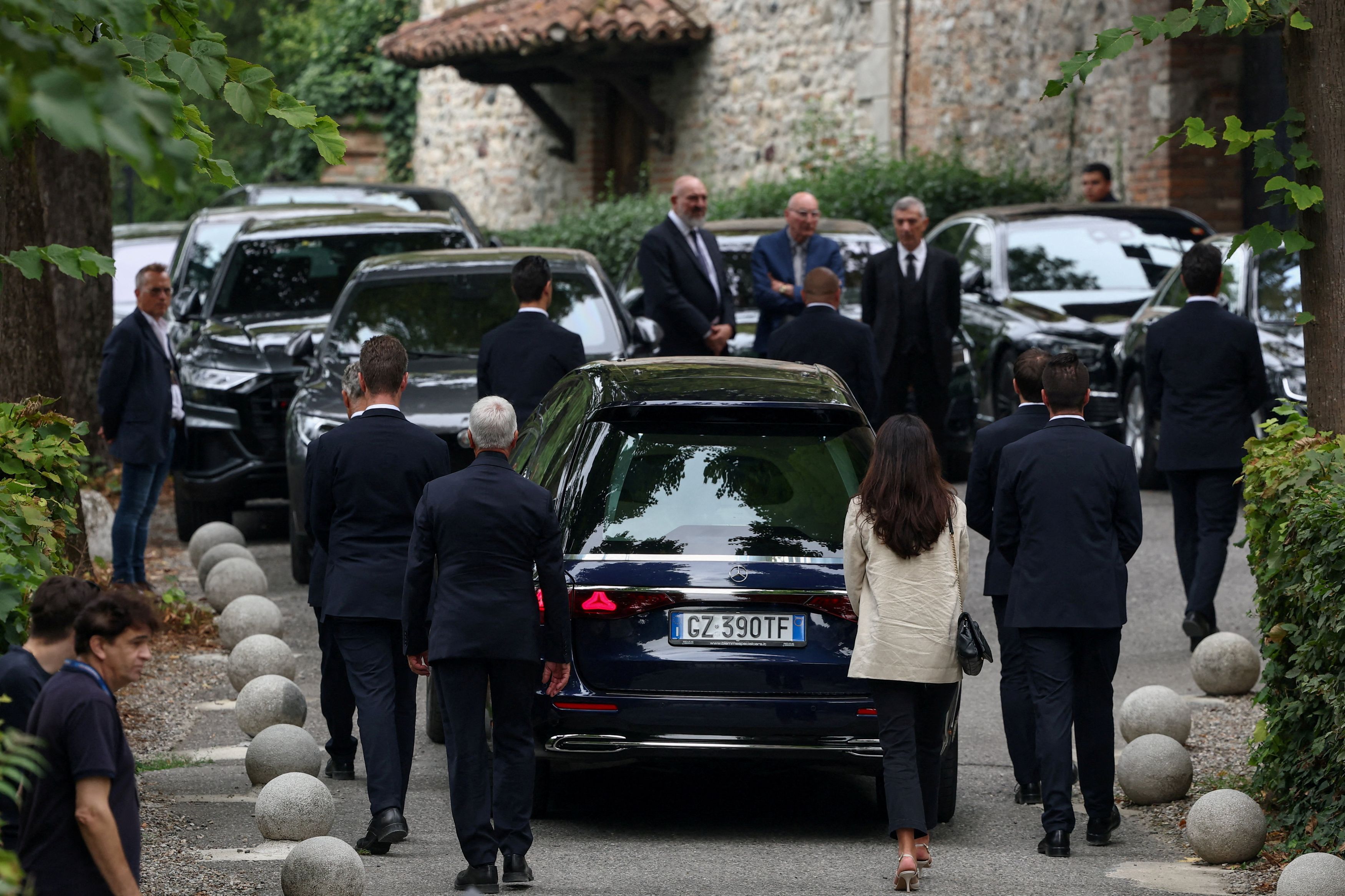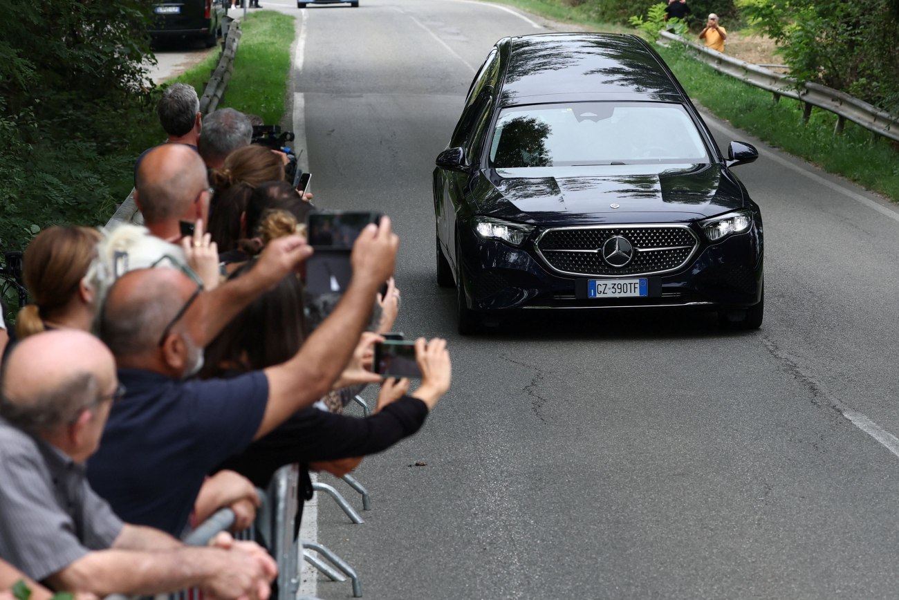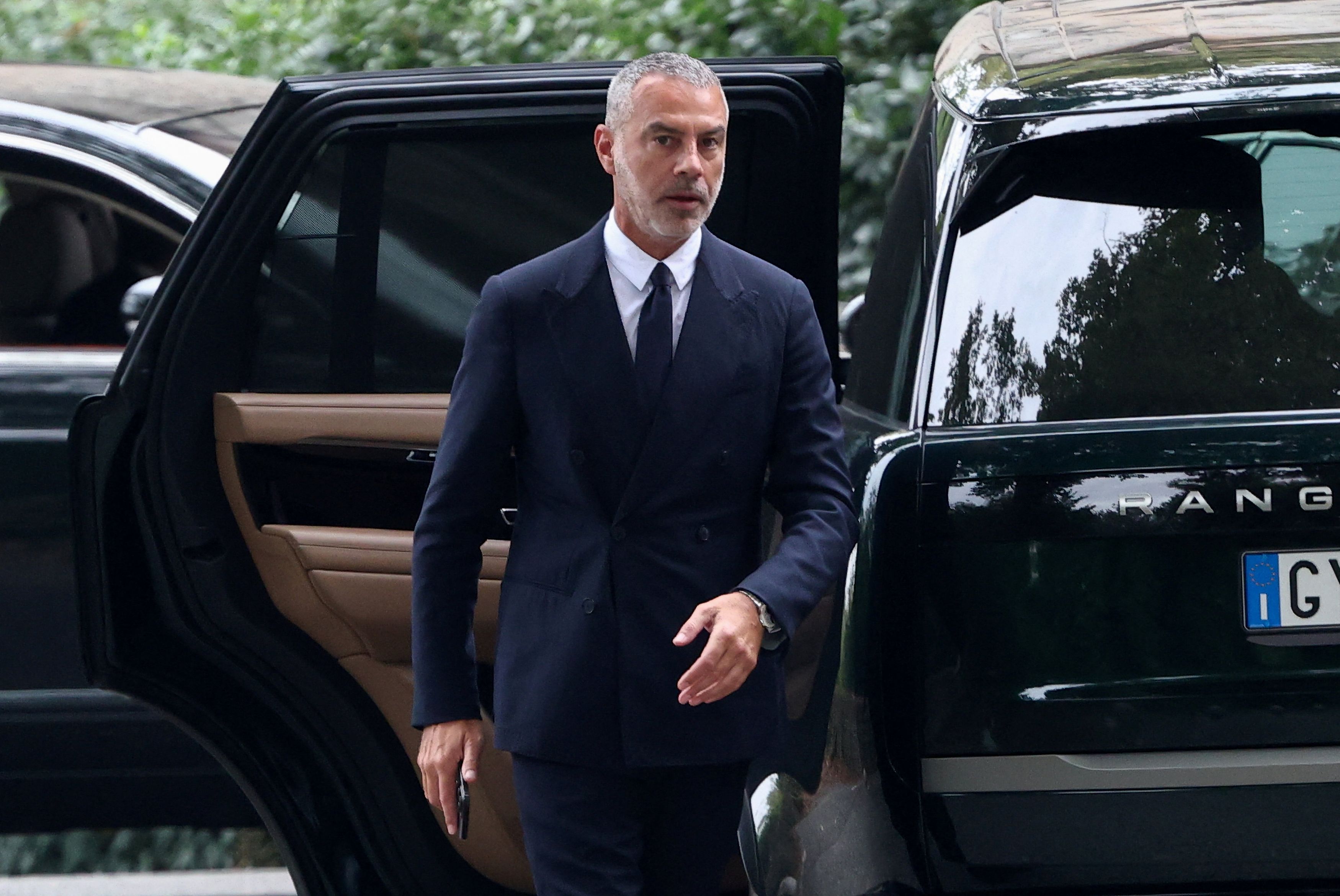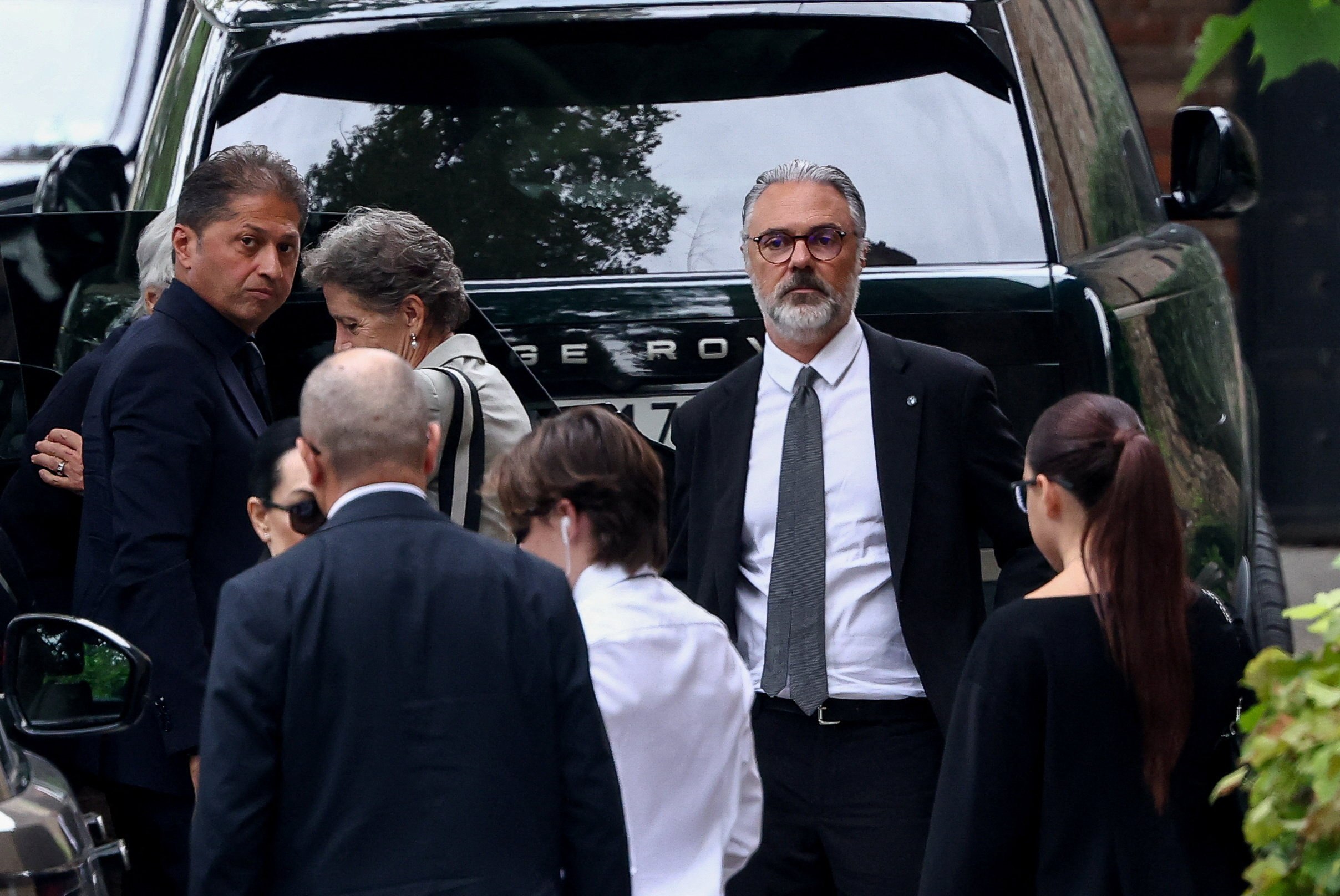 Ο Αντρέα Καμεράνα, ανιψιός του εκλιπόντος Ιταλού σχεδιαστή μόδας Τζόρτζιο Αρμάνι, φτάνει για την ιδιωτική κηδεία του Αρμάνι, η οποία θα τελεστεί στον ναό του Σαν Μαρτίνο στο Ριβάλτα της Ιταλίας, στις 8 Σεπτεμβρίου 2025