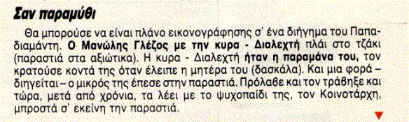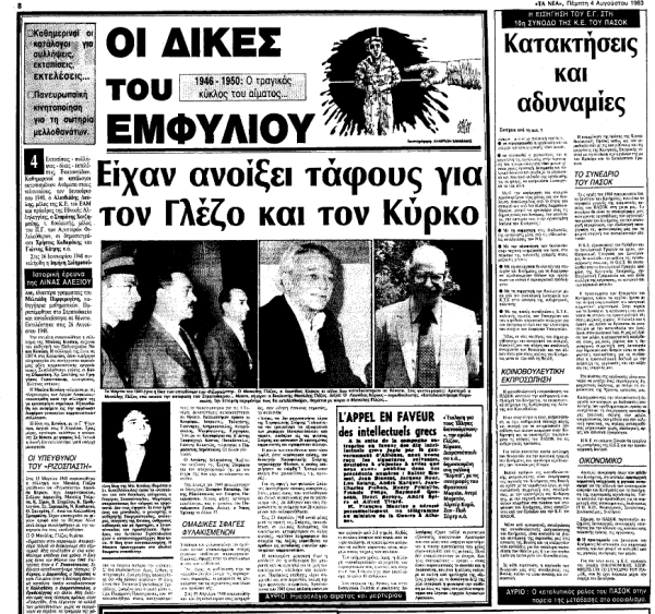 *Απόσπασμα από άρθρο-ιστορική έρευνα με την υπογραφή της δημοσιογράφου Λίνας Αλεξίου, που αφορούσε τις δίκες του Εμφυλίου (1946-1950) και είχε δημοσιευτεί στην εφημερίδα «Τα Νέα» την Πέμπτη 4 Αυγούστου 1983.