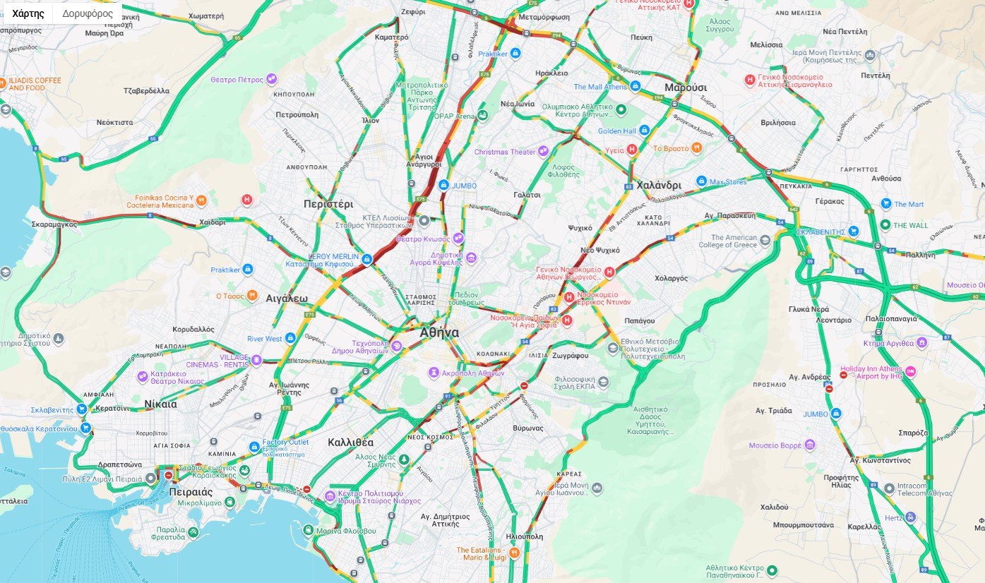 Αυξημένη κίνηση παρατηρείται στην Αττική Οδό, όπως και από τον κόμβο Μεταμόρφωσης έως τον κόμβο Κηφισίας - Κυκλοφοριακό κομφούζιο γύρω από τους στύλους Ολυμπίου Διός