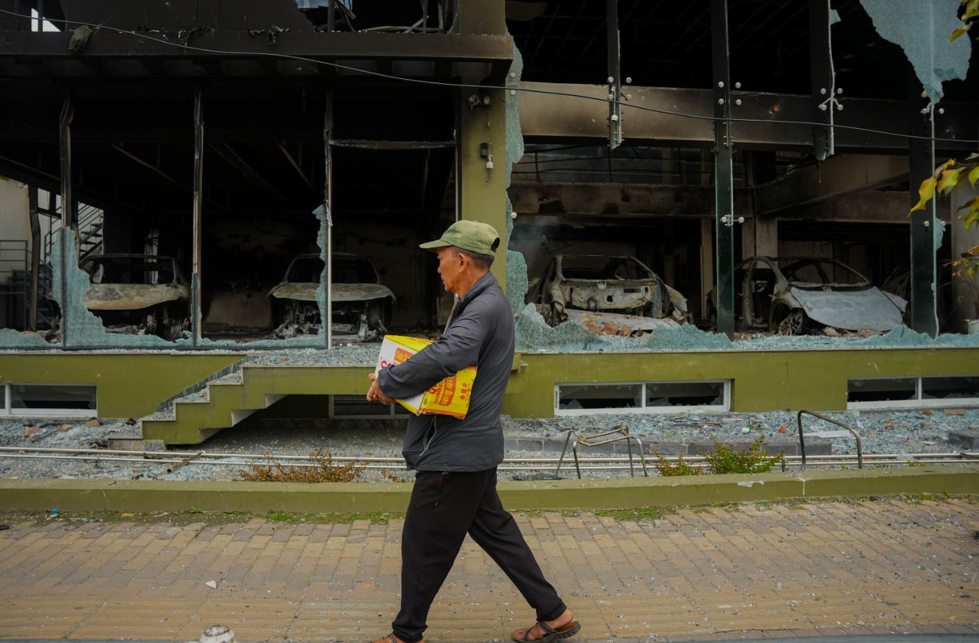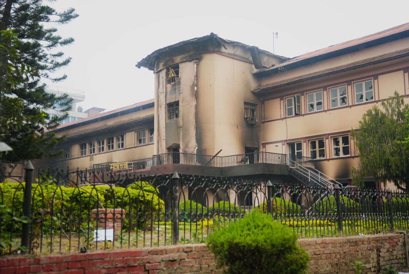 Αφού οι διαδηλωτές εισέβαλαν στην κεντρική γραμματεία της κυβέρνησης στις 9 Σεπτεμβρίου, έβαλαν φωτιά σε ολόκληρο το συγκρότημα. Δεκάδες SUV και αυτοκίνητα που καταστράφηκαν και κάηκαν είναι διασκορπισμένα στο πάρκινγκ.