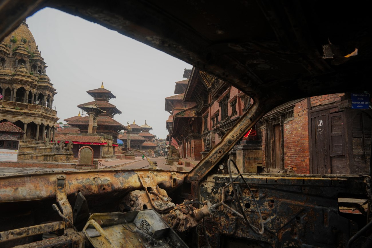 Απέναντι, στα νότια, στο Ανώτατο Δικαστήριο, ένα πυροσβεστικό όχημα που ανήκει στην Μητροπολιτική Πόλη του Κατμαντού προσπαθεί να σβήσει τις φλόγες. Το κτίριο εξακολουθεί να καπνίζει και εκατοντάδες φακέλους υποθέσεων έχουν καταστραφεί από τις φλόγες. Τώρα υπάρχει επίσης η απειλή από φυγάδες κρατουμένους από φυλακές σε όλη τη χώρα. Αυτή είναι η εικόνα που χτίζουν τα συντηρητικά ΜΜΕ σε όλο τον κόσμο: Καταστροφή.
