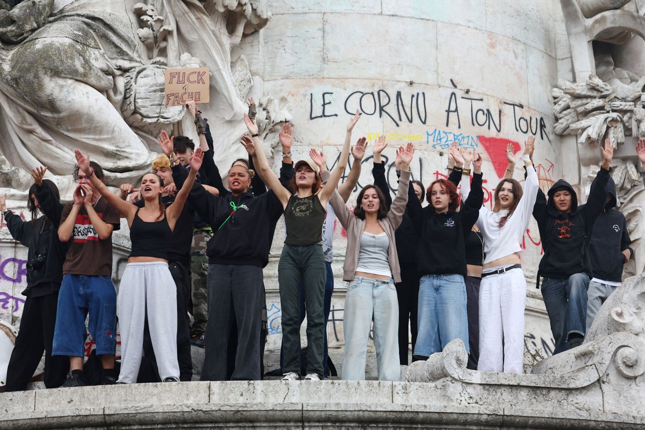 Φωτογραφία: Διαδηλωτές υψώνουν τα χέρια τους καθώς συμμετέχουν σε διαδήλωση στην Place de la Republique (Πλατεία Δημοκρατίας) κατά τη διάρκεια μιας ημέρας διαδηλώσεων στο Παρίσι, στο πλαίσιο του λαϊκού κινήματος διαμαρτυρίας με το όνομα «Bloquons Tout», Γαλλία 10 Σεπτεμβρίου 2025. REUTERS/Abdul Saboor