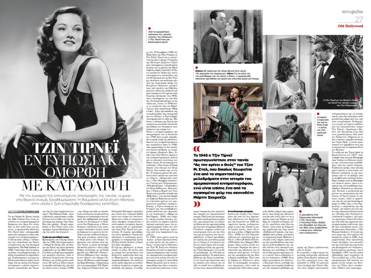 Την ίδια στιγμή, η επαναπροβολή της ταινίας Laura στα θερινά σινεμά μάς ταξιδεύει ξανά στη γοητεία και την τραγική μοίρα της ηθοποιού που τη σφράγισε.