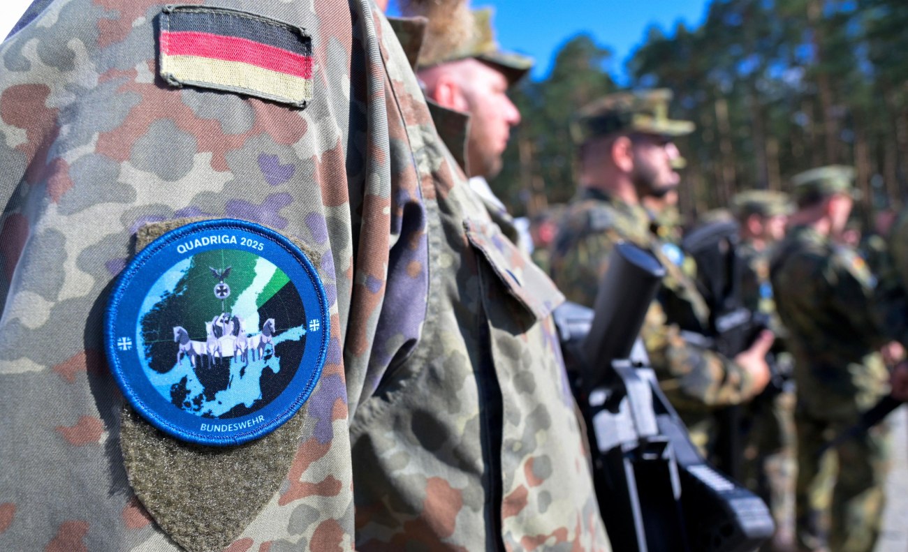 Γερμανικά στρατιωτικά οχήματα κινούνταν τη Δευτέρα 8 Σεπτεμβρίου από τη Βαρσοβία της Πολωνίας προς το Βίλνιους της Λιθουανίας για την άσκηση «Quadriga 2025» . Έφεραν γερμανικές σημαίες και σημαίες της ΕΕ που δεν είναι εμφανείς.
