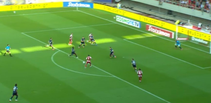 Ο Αγιούμπ Ελ Κααμπί βρέθηκε σε καλή θέση στο ημικύκλιο της περιοχής, έκανε το σουτ, αλλά ο γκολκίπερ του Πανσερραϊκού, Τιναλίνι, μπλόκαρε την μπάλα.