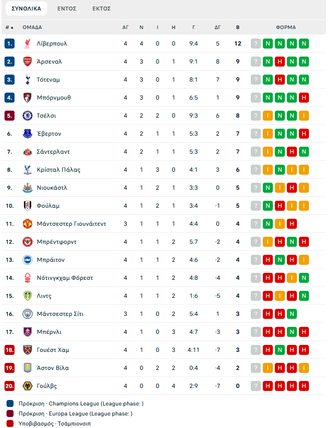 Τα αποτελέσματα και το υπόλοιπο πρόγραμμα της 4ης αγωνιστικής: